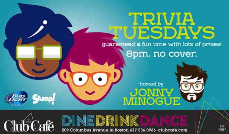 Catch your host Jonny Minogue for Trivia every Tuesday at 8 PM!