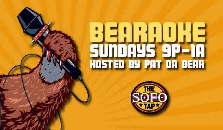 The fur is really gonna fly when you take the stage and sing during BEARAOKE at The SoFo Tap, hosted by Pat Da Bear with DJ Creagh, this Sunday from 9pm–1am! $7 BIG BEAR Miller Lite Drafts, $6 Chicago Handshakes and $5 Prairie Vodka Cocktails are on special all day and night to help get your growl and howl on!