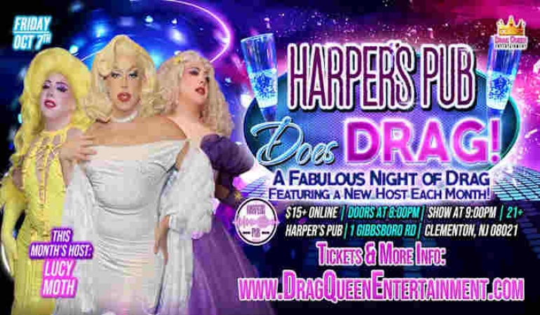 Get ready, Clementon, NJ... On Friday, October 7th, HARPER’S DOES DRAG returns with our FABULOUS hostess, Lucy Moth!