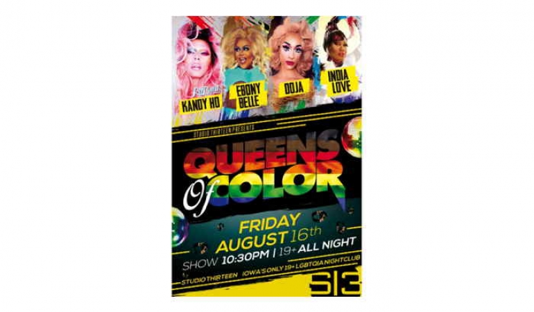 Studio 13 is proud to present another Queens of Color showcase featuring Kandy Ho from RuPaul's Drag Race plus Ebony Belle, India Love, Doja and more!