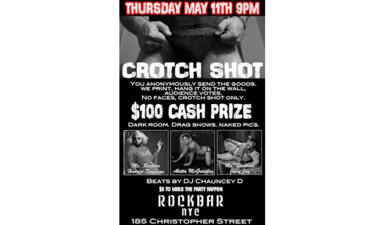 $100 cash prize for the best crotch shot. Close-ups only, sent anonymously, no face or body. Pics get printed and hung on the wall. The audience votes and the best pic wins! Not about size. It’s about who has the best pic! Hosted by Alotta McGriddles, Mx. Rockbar 2023 Harriet Tugsman, and Mr. Rockbear Juicy Jay.