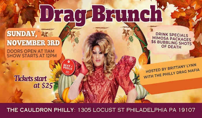 Join them for a fabulous Drag Brunch filled with glitter, glamour, and lip-syncing extravaganza at The Cauldron, on 1305 Locust Street, Philadelphia, PA 19107. Hosted by Brittany Lynn (Winner Best of Philly 2022 and 2023- Best Drag Shows), this brunch is sure to dazzle the fussiest fairy in your crew! Shows and Stunts by the Philly Drag Mafia! Our Drag Brunch is the perfect way to start your day with laughter and entertainment.