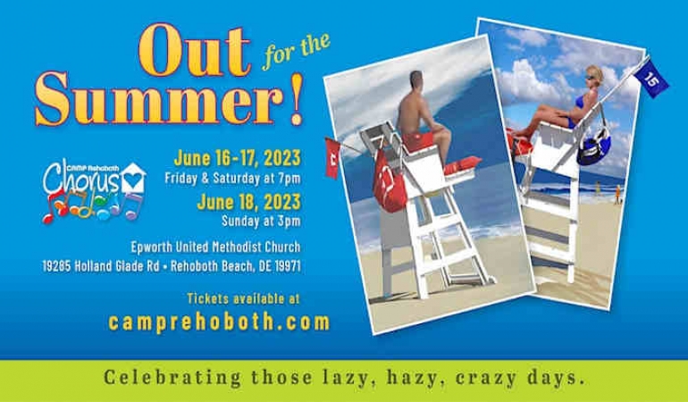 he 85-member CAMP Rehoboth Chorus is now preparing for its June 2023 concert “Out for the Summer” to entertain you with hit summer songs including a Beach Boys medley, "Saturday in the Park," "A Summer Song" and many, many more.