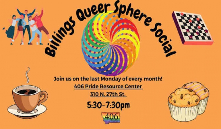 Join them for the Billings Queer Sphere Social! Come by the 406 Pride Resource Center on the last Monday of each month to expand your Queer Sphere.