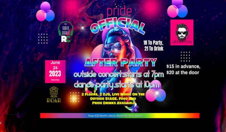 Join them for a 2 part After Party. After the Pre After Party at the Shaffner House , come on down to ROAR for the Official Pride Winston Salem After Party. This is going to be epic. Starting with the outside concernt by 2 live bands, then move on in to 2 DJ's on 2 floors.