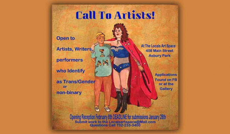 The Locals Art Space at 408 Main Street in Asbury Park will hold a Trans/Gender and Non-Binary art show. The opening reception will be on February 8, 2020, and will run through the month of February.