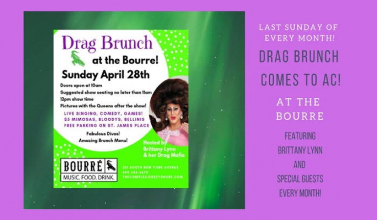 Drag Brunch FINALLY comes to AC! Bourre_ac is bringing you the finest in female and celebrity impersonation with Philly’s Drag Queen Brittany Lynn (Ian Morrison-Miss'd America 2004 and the Mummers Miss Fancy Brigade) and her infamous Philly Drag Mafia! (Phillydragmafia.com)-plus special guests from the Philly Drag Mafia!