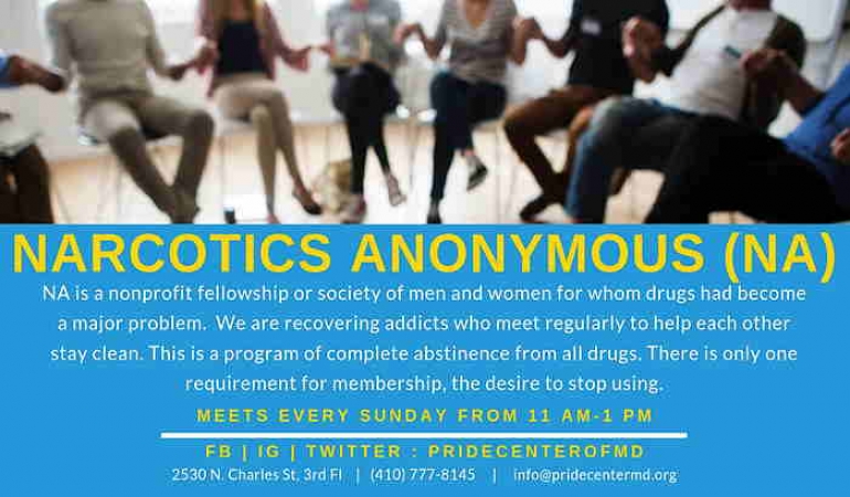 Narcotics Anonymous (NA) meets every Sunday from 11 AM-1 PM