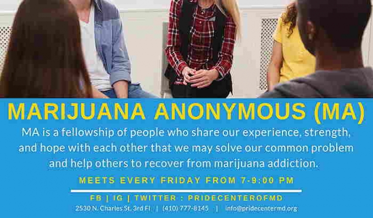 Marijuana Anonymous (MA) is a fellowship of people who share our experience, strength, and hope with each other that we may solve our common problem and help others to recover from marijuana addiction. Marijuana Anonymous (MA) meets every Friday from 7-9PM