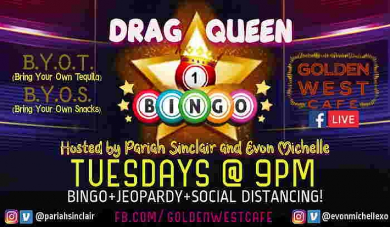 Tune in LIVE every other Tuesday at 9PM on Golden West’s Facebook page and join Baltimore’s Hardest Working Queen Evon Michelle and The Giraffe Queen herself Pariah Sinclair as they host an interactive Bingo experience, unlike anything you’ve done before.