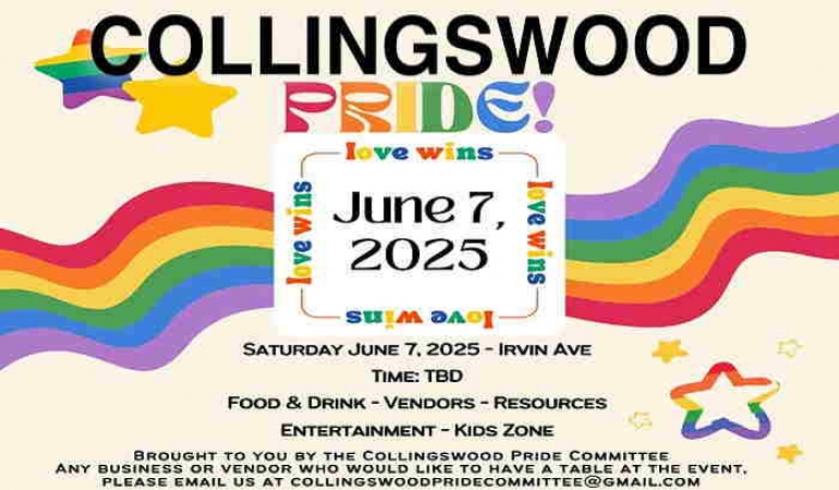 Save the date for their fourth annual Collingswood Pride Event! They hope to see everyone there. They will announce the timeframe as they get closer to the event.