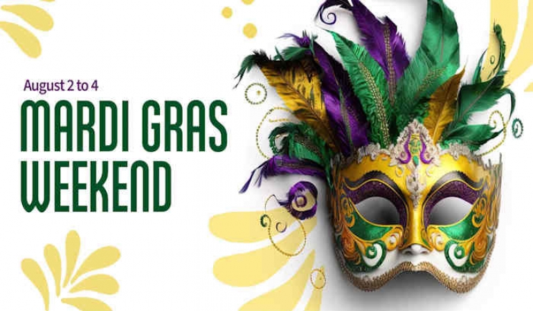 It's Mardi Gras at the Dunes Resort! Bring your most flashy and ornate masks, and get ready to work for some beads!
