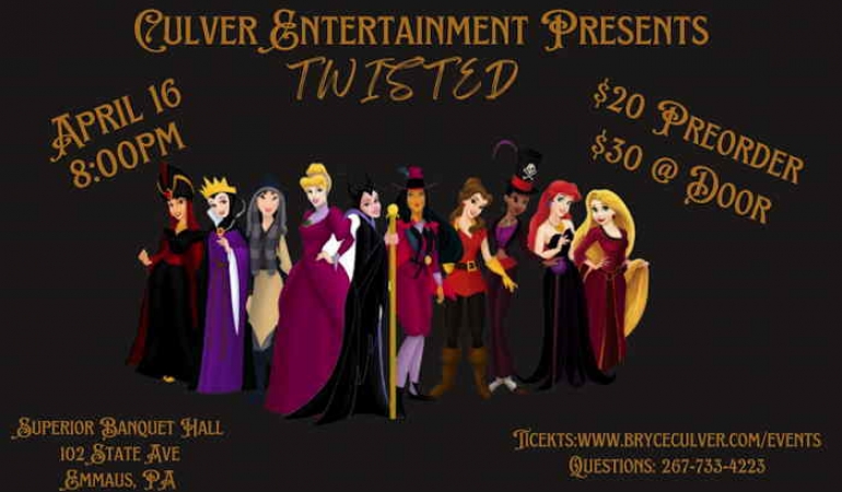 Join the Culver Crew as they return to Emmaus and Superior Banquet Hall for a fun filled night of debauchery and mayhem I mean drag and entertainment. The show will feature Bryce Culver, Grei Culver, Apollo King, Special K, Iris Doll Culver, Wyatt Culver, and Sateen Rouge.