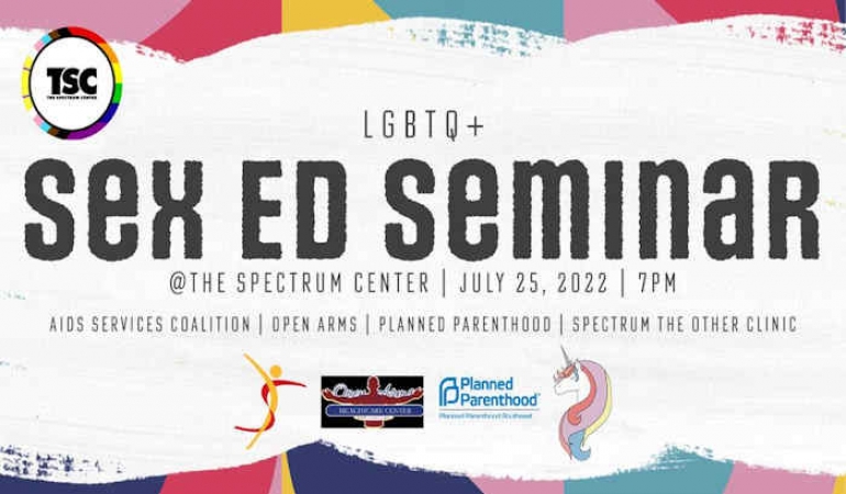 TSC is hosting our first Sex Ed Seminar, and we will be joined by AIDS Services Coalition, Open Arms Healthcare Center, Planned Parenthood, and Spectrum the Other Clinic. Our guest speakers will discuss basic reproductive health; STI prevention, testing, and treatment; U=U and prep; and sexual health while on HRT.