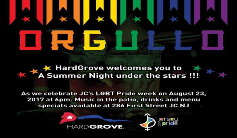 The Hard Grove welcomes you to a summer night under the stars! As we celebrate Jersey City's LGBT Pride week on August 23rd, 2017 at 6pm. Music in the patio, drinks and menu specials available at 284 First Street, Jersey City NJ 07302