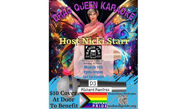 Hosted by the fabulous internationally known drag performer Nicki Starr, come join awesome DJ Richard Ramirez at the Mason Jar on Route 202 and have a great night out! Pick a song, grab some friends and some $ingles, plan on a great meal, and prepare for lots of fun!