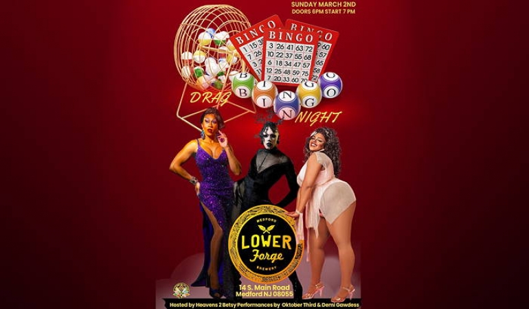 Get ready for a fabulous night of fun. Drag Bingo Night at Lower Forge Brewery in Medford, NJ, with What's the Buzz Productions on Sunday, March 2nd! Doors open at 6:00 PM, with the show starting at 7:00 PM.