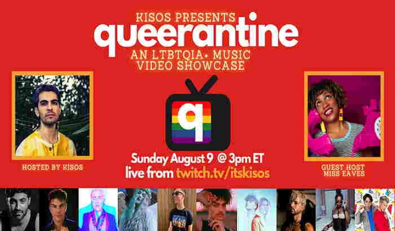Queerantine is a one-of-a-kind, weekly music video showcase highlighting artists across the LGBTQIA+ spectrum, airing on Sunday afternoons at 3:00 p.m. EST, presented by musical artist Kisos.