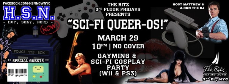 Gay geeks in all their nerddom, Gayming, Drinking, Dancing it up, and connecting every other Friday night.