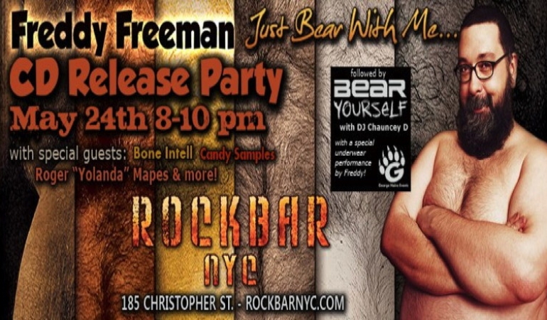 Come celebrate the release of my new album "Just Bear With Me" at Rockbar NYC, Friday May 24th, with special guests, Candy Samples, Roger Anthony Tony Mapes, Bone Intell and more. Hear Freddy perform some of the songs live, with special performances by his guests stars ! Get signed copies of the new CD.