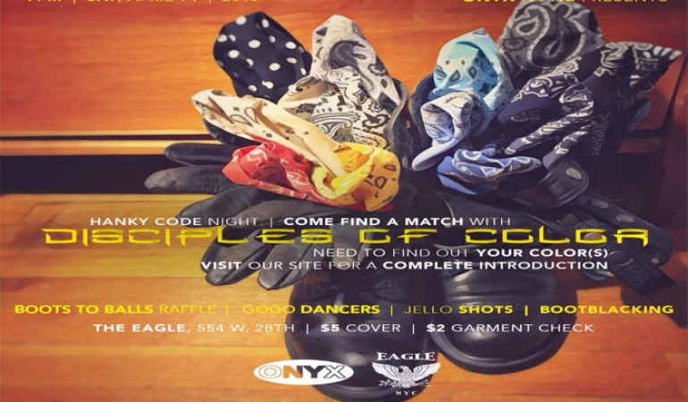 There comes a time when you must “choose” or NoT!!! Come find out who’s into what with the system that has worked cross the decades... The “DISCIPLES OF COLOR” awaits you, this is HANKY CODE NIGHT with the Men of ONYX, NY-NE...
