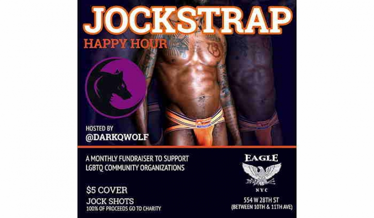 Rotating monthly fundraisers benefiting local LGBTQ community organizations hosted by Q Darkqwolf. 100% raised from raffle prizes, Jock Shots and $5 cover goes to charity. 7-10P. Clothes check available.