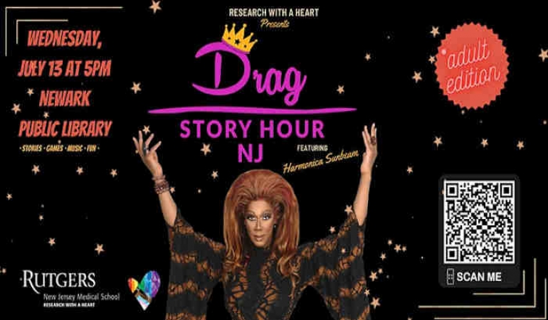 Adult Drag Story Hour & Game Night with Harmonica Sunbeam at Newark Public Library in Newark NJ