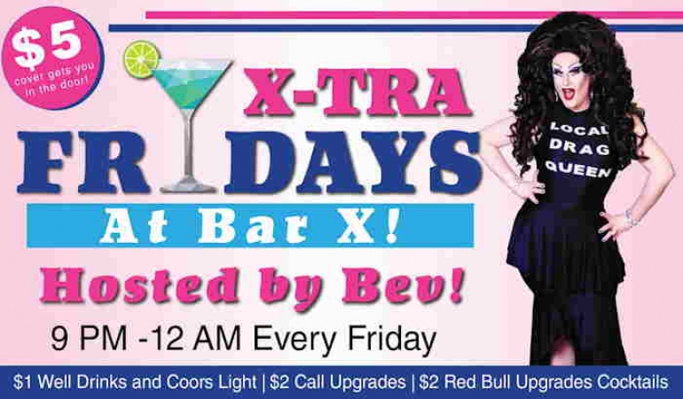 Every Friday, Bar X will be offering AMAZING drink specials from 9PM -12 AM