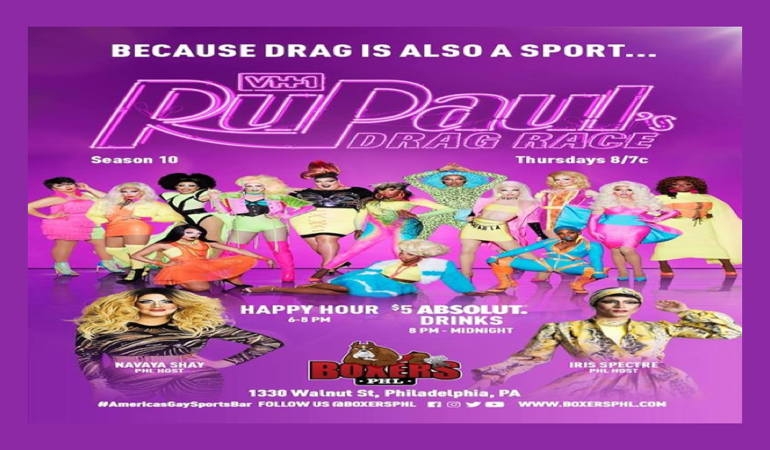Join Iris Spectre & Navaya Shay for a fun filled night of RuPauls Drag Race: Season 10 viewing party at Boxer's PHL!