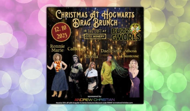 City Winery Philadelphia and Buzz Gworls Presents: Christmas At Hogwarts Drag Brunch live on December 10th at 12pm Buzz Gworls presents the enchanting "Christmas at Hogwarts Drag Brunch" at City Winery in Philadelphia on Sunday, December 10th. Step into a wizarding world as the doors open at 11 am, with the show beginning at 12 pm.
