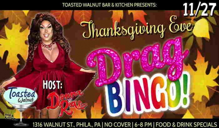 Drag Queen Bingo: Thanksgiving Eve At Toasted Walnut Bar & Kitchen In Philadelphia PA