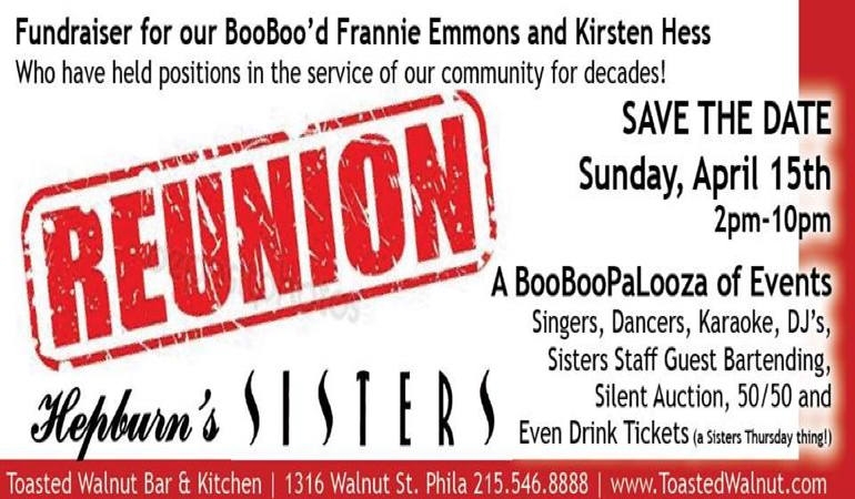 Toasted Walnut will host an all day event featuring: Live Entertainment, Karaoke, Dancers and DJ, Special Guest Bartenders from Sisters, Silent Auction, 50/50 and even Drink Tickets (yeah, those are an historic Sisters thing!)