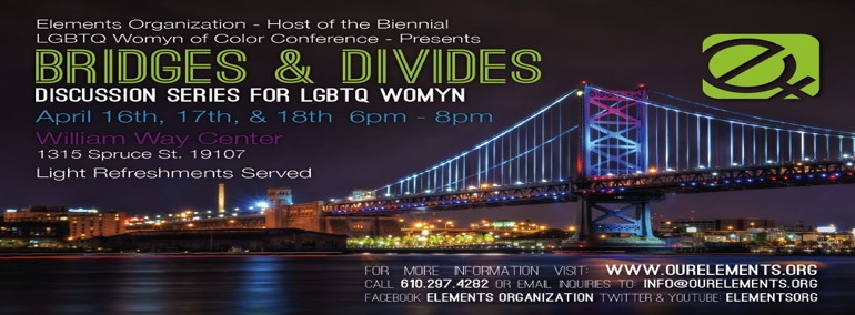 Come out and share your voice. Elements this year is getting back to its roots--building its base through events that promote visibility, dialogue, and cultivate new LGBTQ womyn leaders. Are we doing enough? Where are areas for growth? What have we done well?