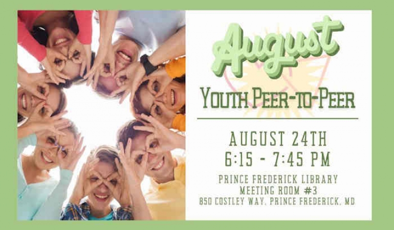 Meeting will be hybrid; attend in-person at Prince Frederick Library, Meeting Room #3 or virtually via Zoom (see link below). Come for support, come to socialize, just come as you are! Peer-to-peers are open to all youth, whether you are LGBTQ+ or an ally!