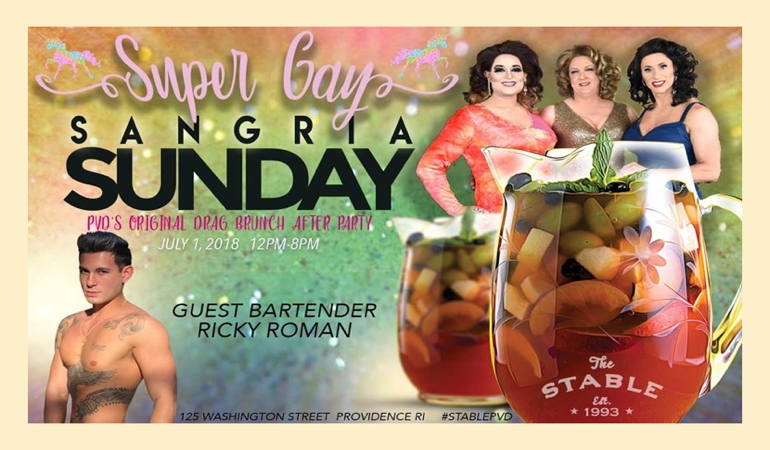 Turning up the heat a bit for our July Super Gay Sangria Sunday! Ricky Roman will be joining us as our Guest bartender as well as performances by PVD's original Drag Brunch Divas LaDiva Jonz, Jacqueline DiMera and Vilet Laboss!!