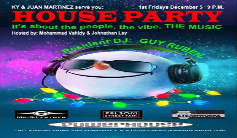 Ky & Juan Martinez serve you: HOUSE PARTY. It’s all about the people, the Vibe and THE MUSIC! Every first Friday at the Powerhouse, 9pm to 2am. $5 cover