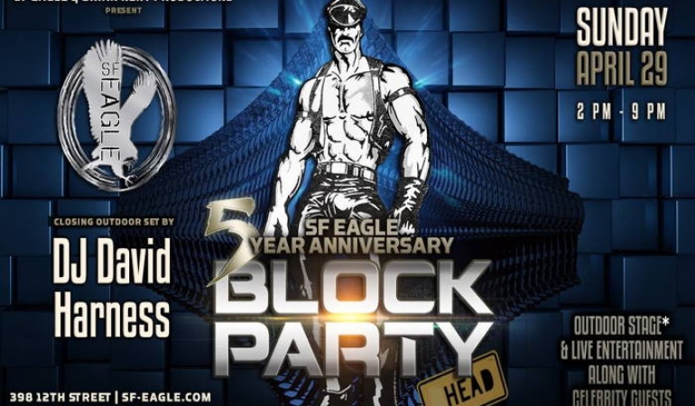 On Sunday, April 29, 2018 the San Francisco Eagle, the pride of our community, in association with Brian Kent Productions, will be celebrating its 5th Anniversary between 2pm and 9pm with a BLOCK PARTY!!