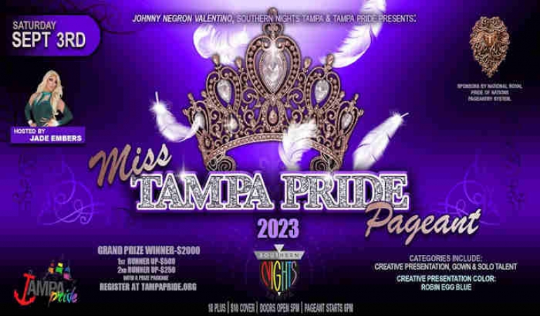 Johnny Negron Valentino Pageantry, Southern Nights Tampa along with Tampa Pride are hosting the 2023 Miss Tampa Pride Pageant.