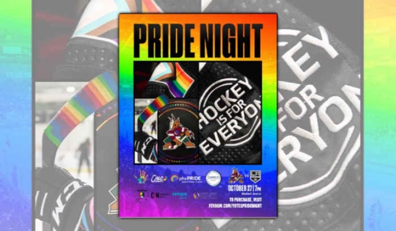The Arizona Coyotes would like to welcome you to join us for our annual Pride Night on Friday, October 27th vs. Los Angeles Kings, in celebration and support of the LGBTQ+ community. Each ticket purchased through this offer will include a complimentary limited-edition Arizona Coyotes Pride Night T-Shirt.