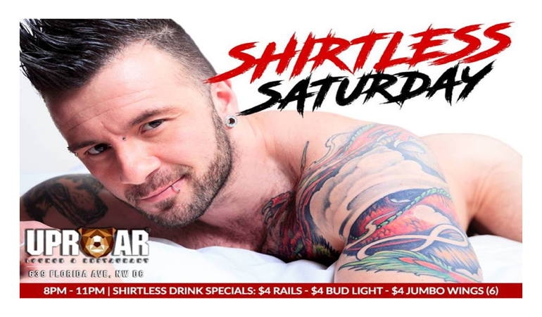 MEN... Saturdays start with Shirtless Night! Come get a taste of discounted drinks, shirtless studs and anything else you desire!