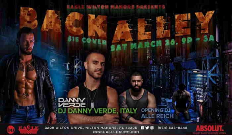 Experience the sounds of internationally known DJ Danny Verde and DJ Alle Reich at Eagle Wilton Manors on March 26th after Bears in the Alley.