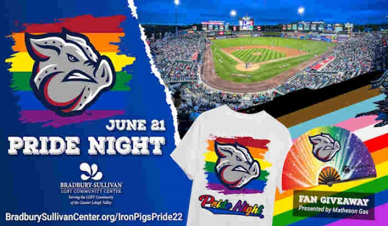 The IronPigs are offering a special Pride Night package through Tuesday, June 7. The package includes a discounted game ticket and a Pride Night shirt for $22.50. The package can only be purchased by visiting bit.ly/IronPigsPride22.