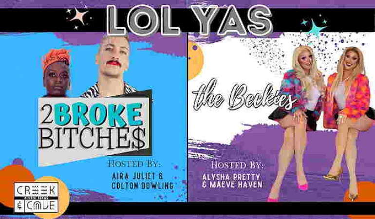 Catch 2BrokeBitche$ hosted by Aira Juliet and Colton Dowling, followed by The Beckies, Alysha Pretty and Maeve Haven. It's 3 solid hours of LOLing and YASing, every 2nd Saturday of the month.
