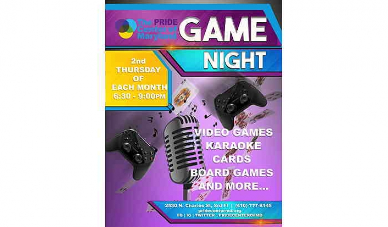 The Pride Center of Maryland hosts a game night on the second Thursday of every month. Join us for an evening of fun, food, and great people.