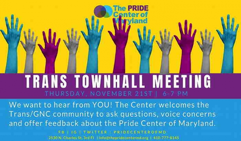 We want to hear from YOU! The Center welcomes the Trans/GNC community to ask questions, voice concerns and offer feedback about the Pride Center of Maryland.