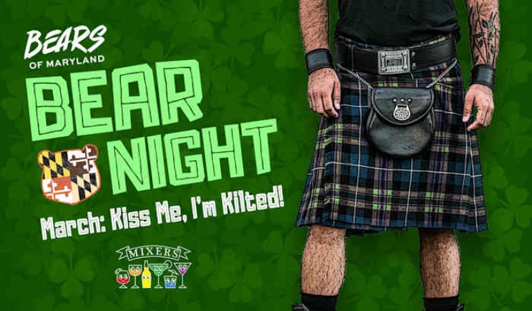 Bear Night March 2024: Kiss Me, I'm Kilted! at Mixers Bar in Baltimore MD