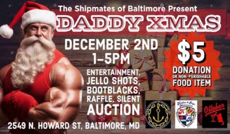 Come out to ShipMates Daddy Xmas supporting B & Dee's Baltimore Love. We will have entertainment, bootblacks, a silent auction, a raffle for our "Wagon of Wonders," pictures with "Naughty" Santa, and more...