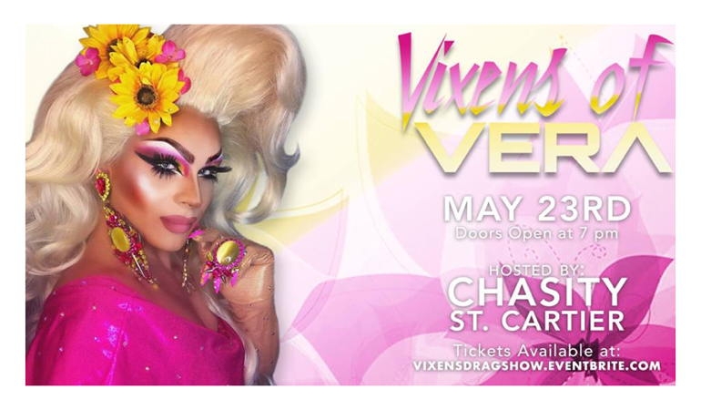 May 23rd, Join the cast of VERA's hit monthly drag show, the VIXENS OF VERA, for their May edition of the show! And We Got A New Host! Taking over the night is none other than Chasity St. Cartier! Enjoy some of the best acts performed LIVE in our spacious Main room!