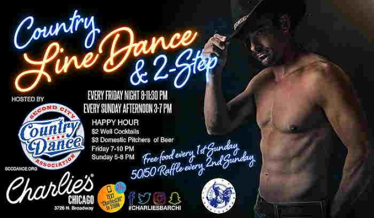 Join the SCCDA every Friday night at Charlie’s Chicago for fun, friends & amazing drinks! FREE country/western two-step & line dance lessons start at 8:00 pm. Learn partner basics and line dances from some of the best dance instructors in Chicago!
