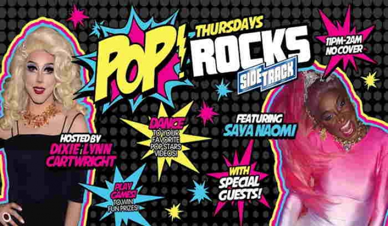 Get Sidetrack'd every Thursday for Pop Rocks with Dixie Lynn Cartwright, Saya Naomi & Special Guests. Drink under the Stars on the Sidetrack Rooftop, Dance to your favorite Pop Bops, play games to win fun prizes and get your life from Chicago Drag. This Thursday, September 12, the Queens are pleased to welcome Guest Performer Jo Mama (Joe Lewis). 9pm-2am...No Cover at Sidetrack.